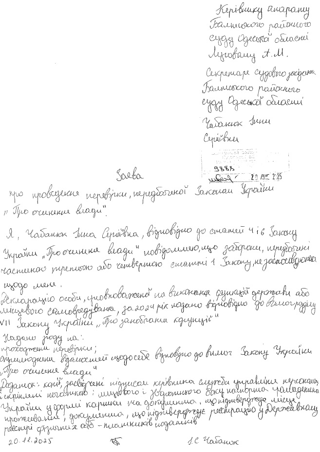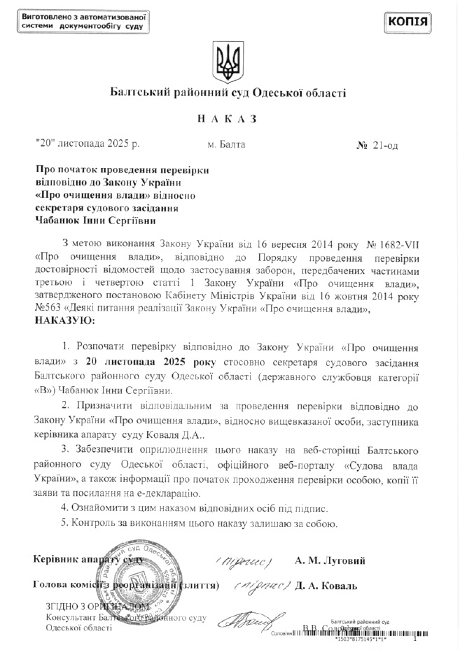 Початок проведення перевірки відповідно до Закону України "Про очищення влади" відносно особи, яка займає посаду державної служби